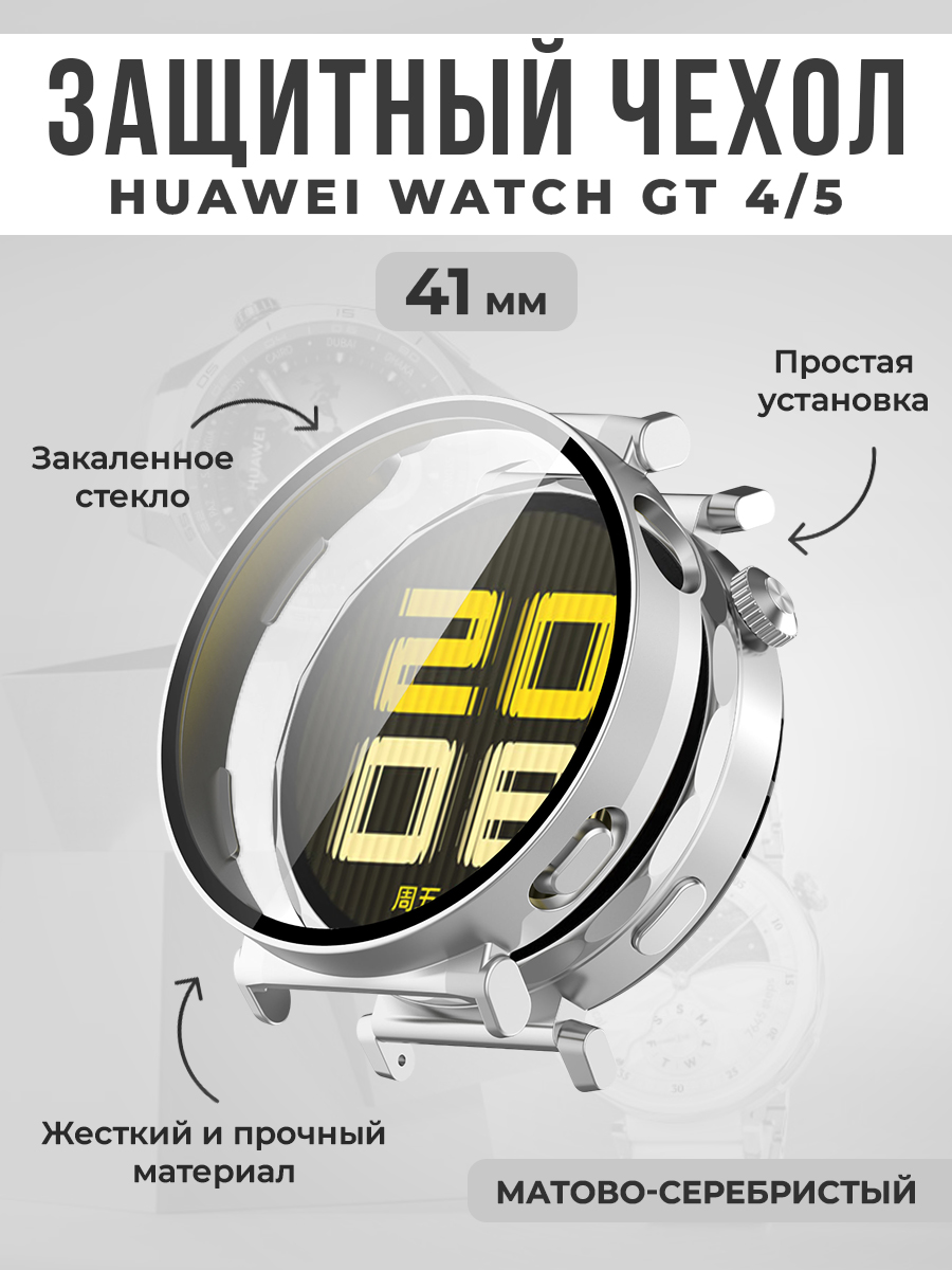 Жесткий защитный чехол со стеклом для Huawei Watch GT 4 / GT 5 41 мм, матово-серебристый