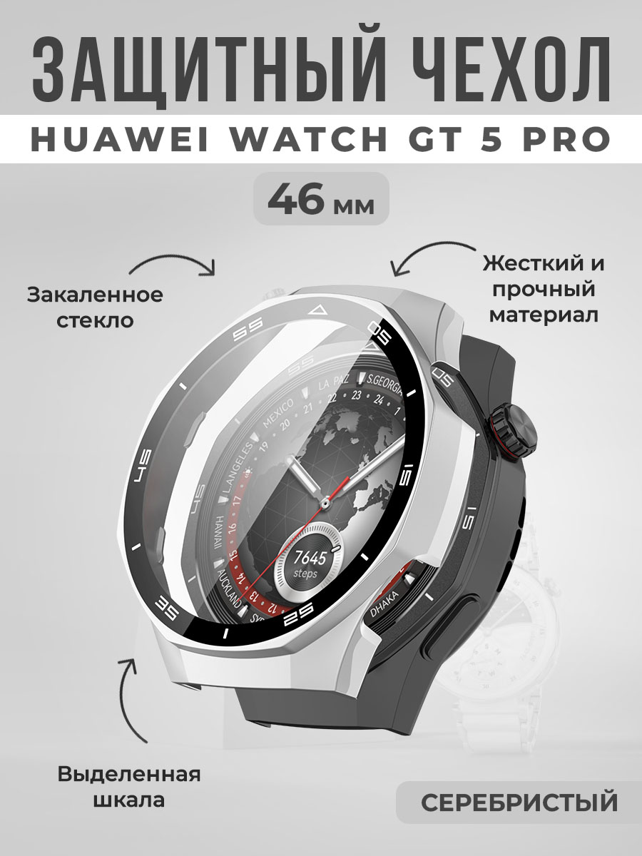 Защитный чехол со стеклом и выделенной шкалой для Huawei Watch GT 5 Pro 46 мм, серебристый
