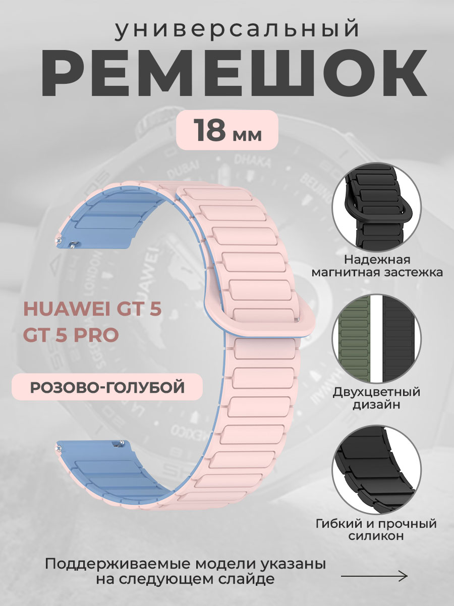 Универсальный магнитный ремешок для Huawei GT 5, GT 5 Pro 18 мм, розово-голубой