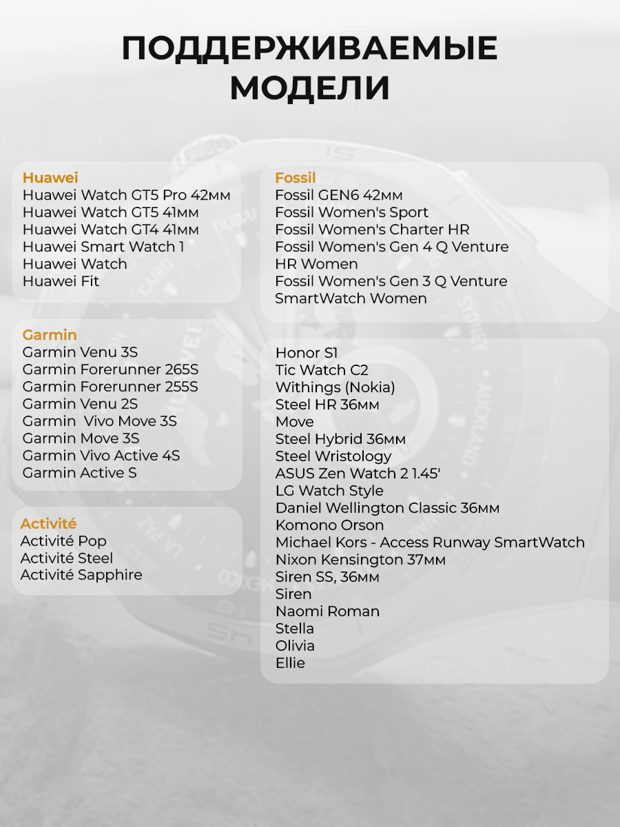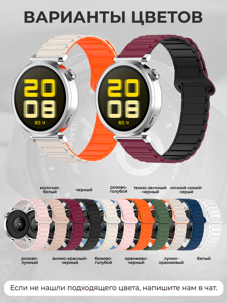 Уникальный двухцветный дизайн ремешка делает его идеальным дополнением к любому образу, а крепкий магнит гарантирует надежное крепление, что особенно важно для активного использования. Благодаря универсальной ширине в 18 мм, он подходит не только для устройств Хуавей, Гармин, Хонор но и для других популярных брендов.