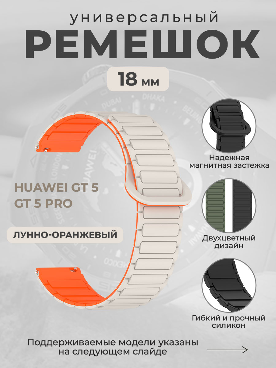 Универсальный магнитный ремешок для Huawei GT 5, GT 5 Pro 18 мм, лунно-оранжевый