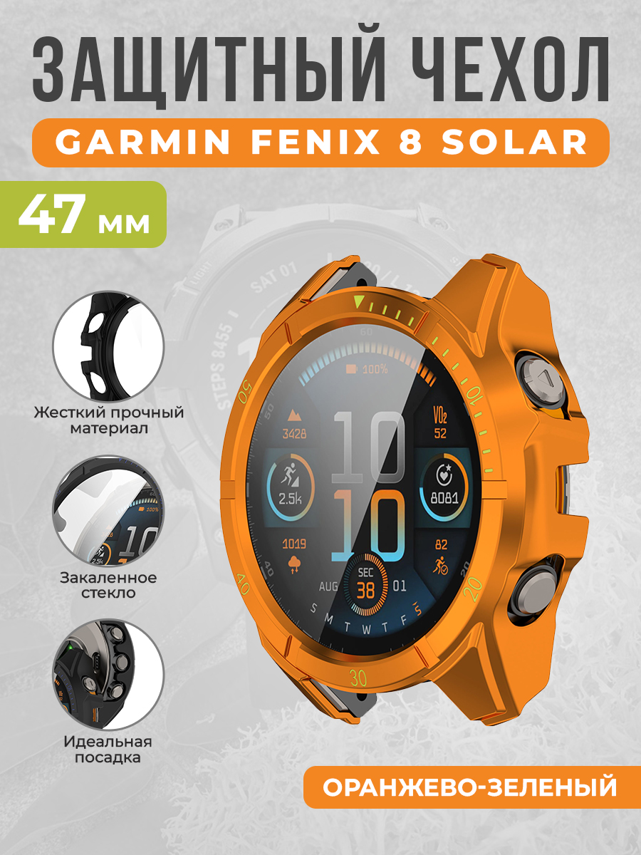 Защитный чехол со стеклом и выделенной шкалой для Garmin Fenix 8 Solar 47 мм, оранжево-зеленый