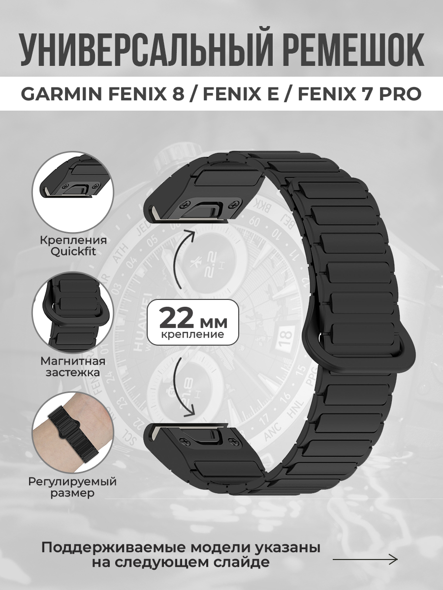 Универсальный магнитный ремешок для Garmin Fenix 8/Fenix E/Fenix 7 Pro, 22 мм, черный