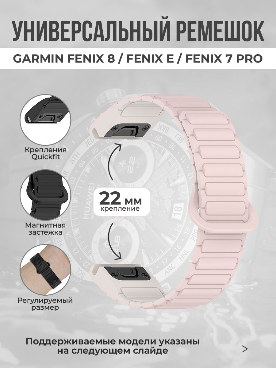 Универсальный магнитный ремешок для Garmin Fenix 8/Fenix E/Fenix 7 Pro, 22 мм, розово-лунный