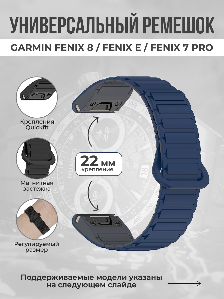 Универсальный магнитный ремешок для Garmin Fenix 8/Fenix E/Fenix 7 Pro, 22 мм, ночной синий-серый