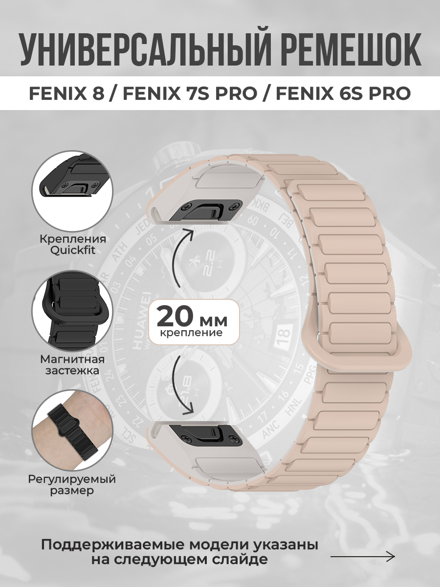 Универсальный магнитный ремешок для Fenix 8/Fenix 7S Pro/Fenix 6S Pro, 20 мм, бежево-лунный