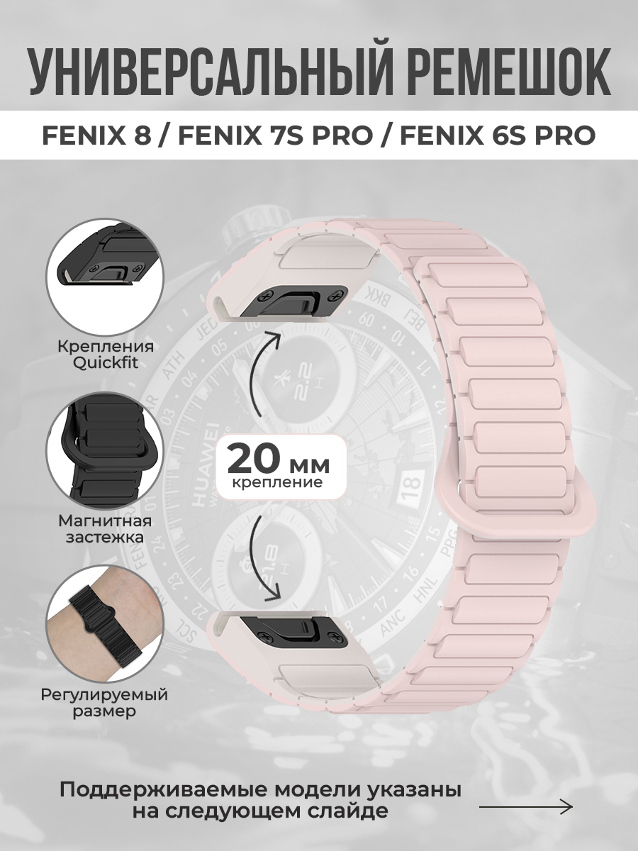 Универсальный магнитный ремешок для Fenix 8/Fenix 7S Pro/Fenix 6S Pro, 20 мм, розово-лунный