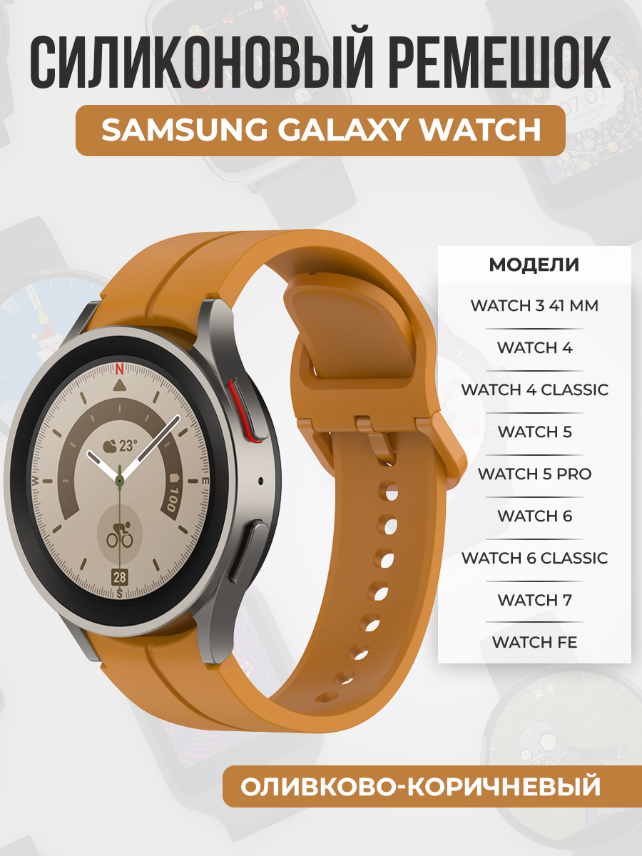 Силиконовый ремешок с канавкой для Samsung Galaxy Watch, оливково-коричневый