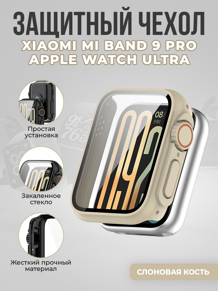 Защитный чехол со стеклом для Xiaomi Mi Band 9 Pro/Apple Watch Ultra, слоновая кость