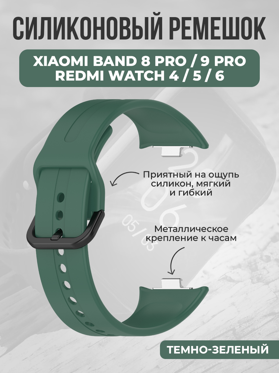 Силиконовый ремешок для Xiaomi Band 8 Pro/9 Pro/Redmi Watch 4/5/6, темно-зеленый