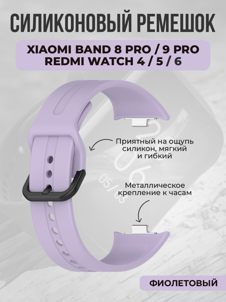 Силиконовый ремешок для Xiaomi Band 8 Pro/9 Pro/Redmi Watch 4/5/6, фиолетовый