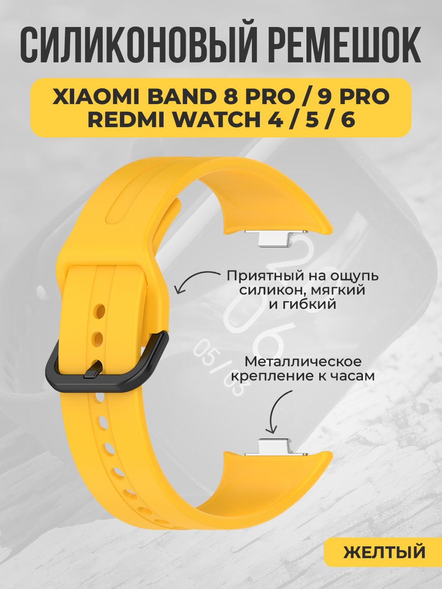 Силиконовый ремешок для Xiaomi Band 8 Pro/9 Pro/Redmi Watch 4/5/6, желтый