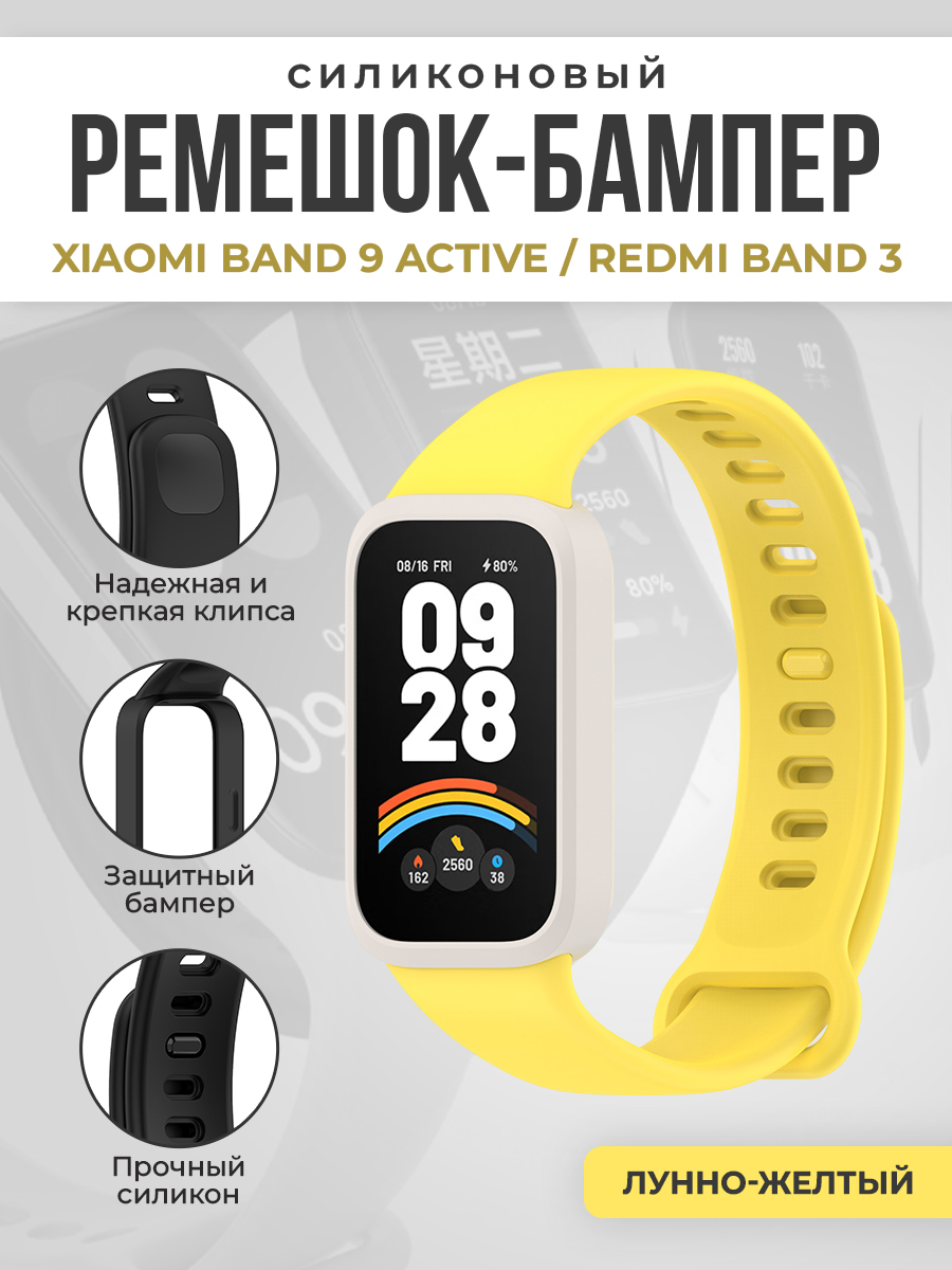 Силиконовый ремешок-бампер для Xiaomi Band 9 Active/Redmi Band 3, лунно-желтый