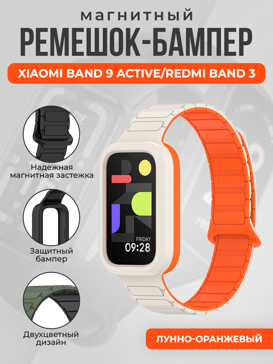Двухцветный магнитный ремешок-бампер для Xiaomi Band 9 Active/Redmi Band 3, лунно-оранжевый