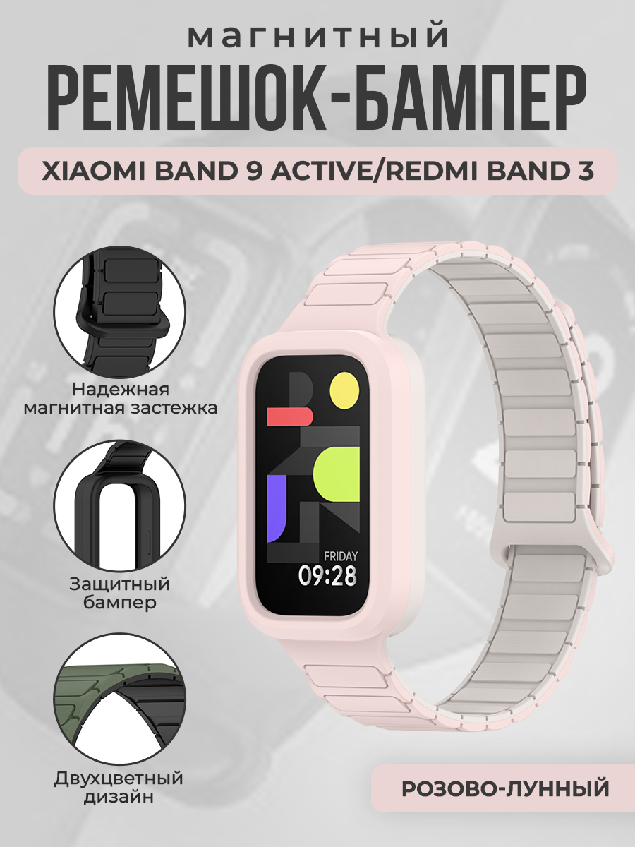 Двухцветный магнитный ремешок-бампер для Xiaomi Band 9 Active/Redmi Band 3, розово-лунный