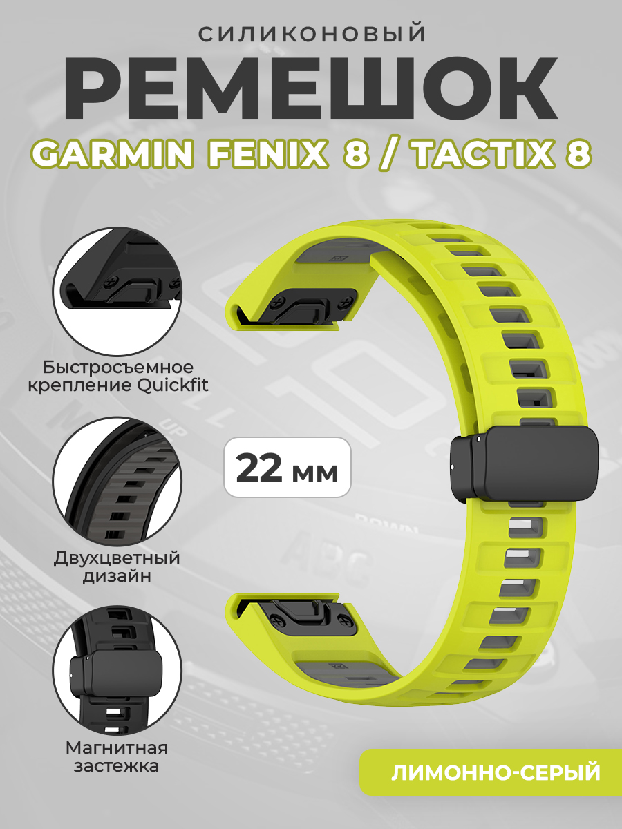 Двухцветный силиконовый ремешок для Garmin Fenix 8/Tactix 8, 22 мм, лимонно-серый