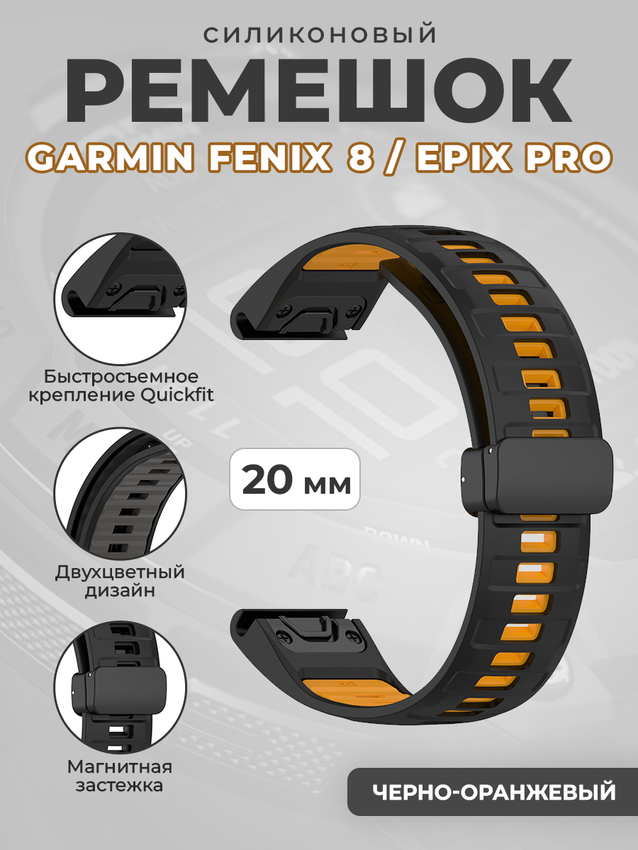 Двухцветный силиконовый ремешок для Garmin Fenix 8/Epix Pro, 20 мм, черно-оранжевый