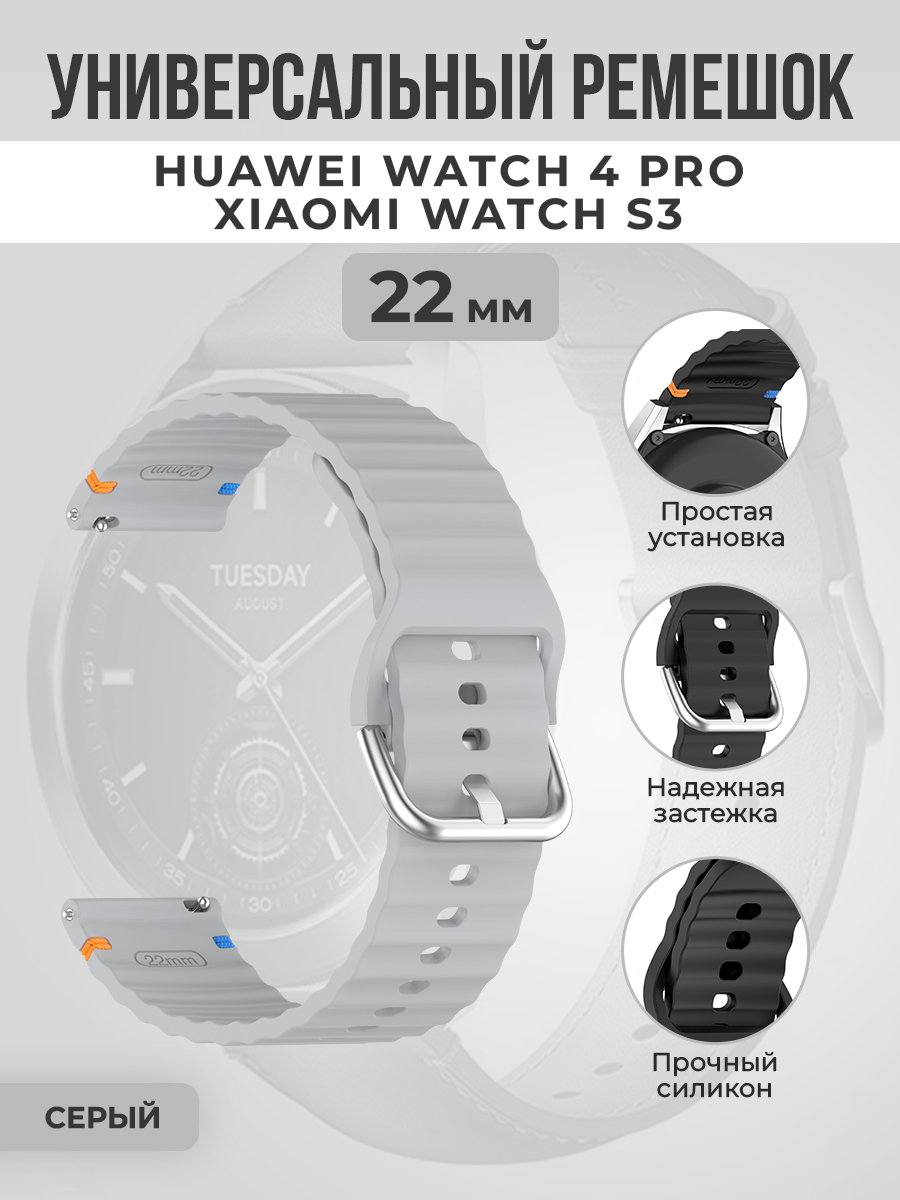 Универсальный силиконовый ремешок для Huawei Watch 4 Pro/Xiaomi Watch S3, 22мм , серый
