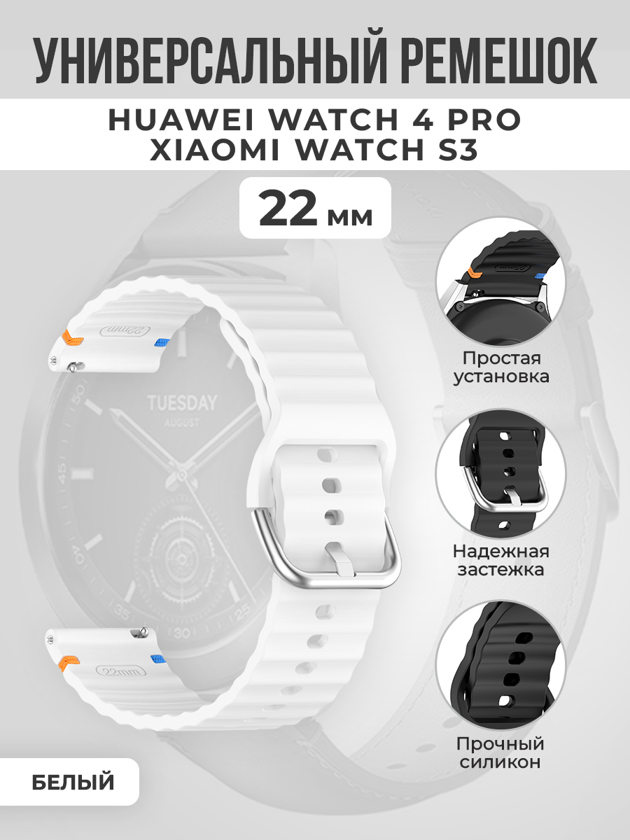 Универсальный силиконовый ремешок для Huawei Watch 4 Pro/Xiaomi Watch S3, 22мм , белый