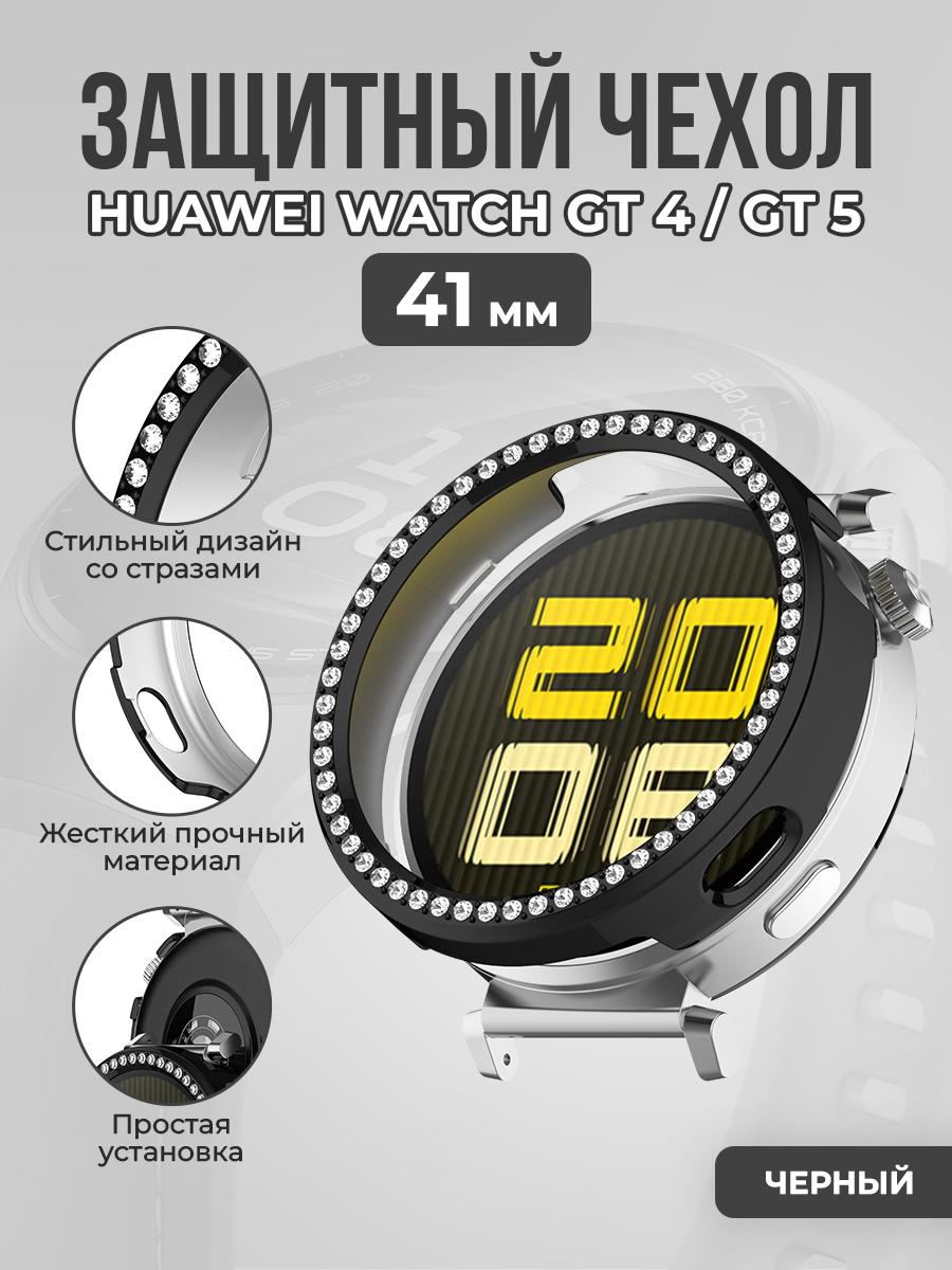Жесткий защитный чехол со стразами для Huawei Watch GT 4/ GT 5, 41 мм, черный