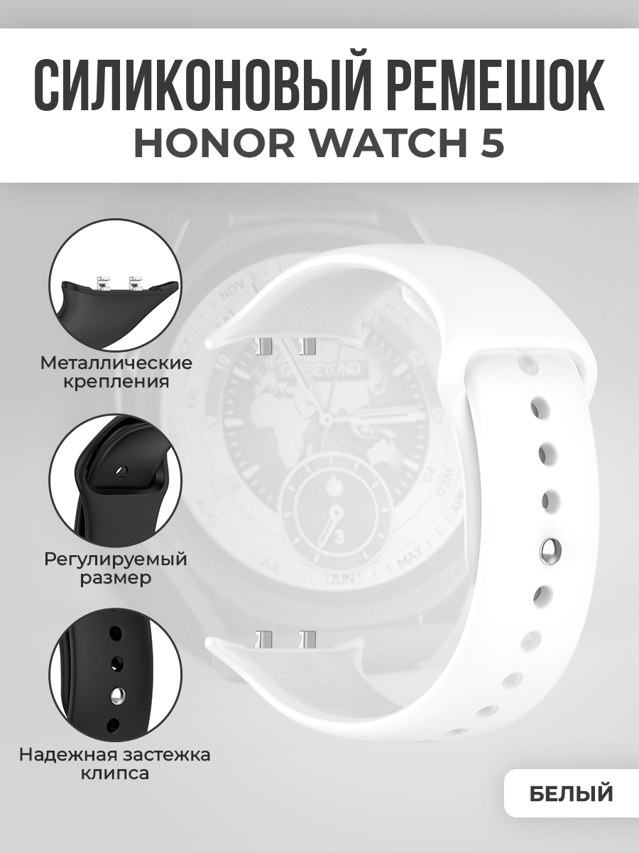 Представляем силиконовый ремешок, идеально подходящий для Honor Watch 5. Этот высококачественный ремешок сочетает в себе стиль и комфорт, обеспечивая надежную фиксацию ваших часов на запястье. Изготовленный из прочного и долговечного силикона, он приятен на ощупь и устойчив к влаге, что делает его идеальным выбором для повседневного использования и активного образа жизни.