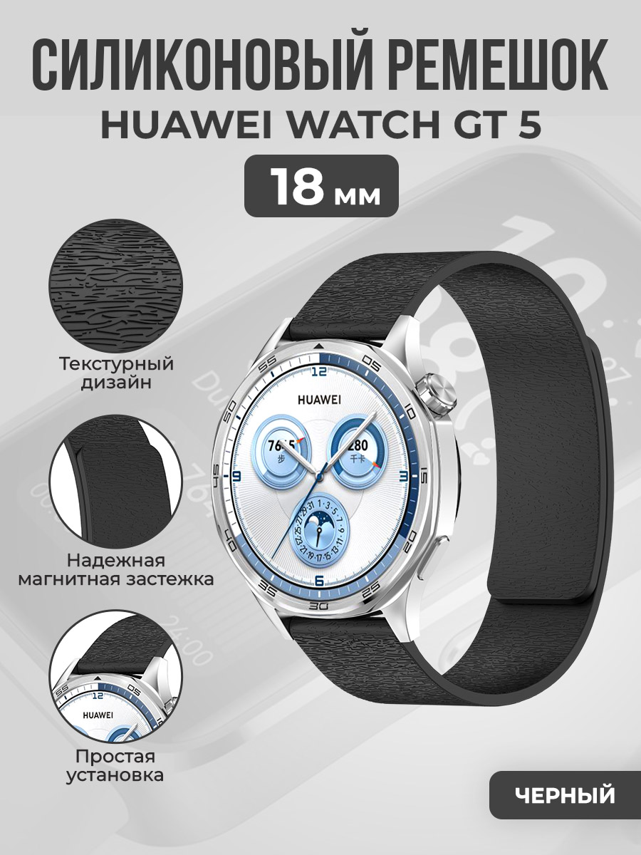 Силиконовый магнитный ремешок для Huawei Watch GT 5, 18мм, черный