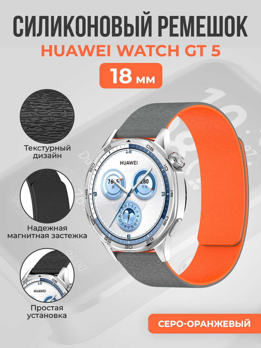 Силиконовый магнитный ремешок для Huawei Watch GT 5, 18мм, серо-оранжевый