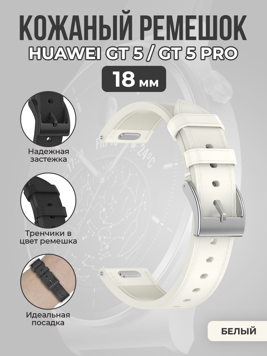 Кожаный ремешок для Huawei GT 5/GT 5 Pro, 18 мм, белый