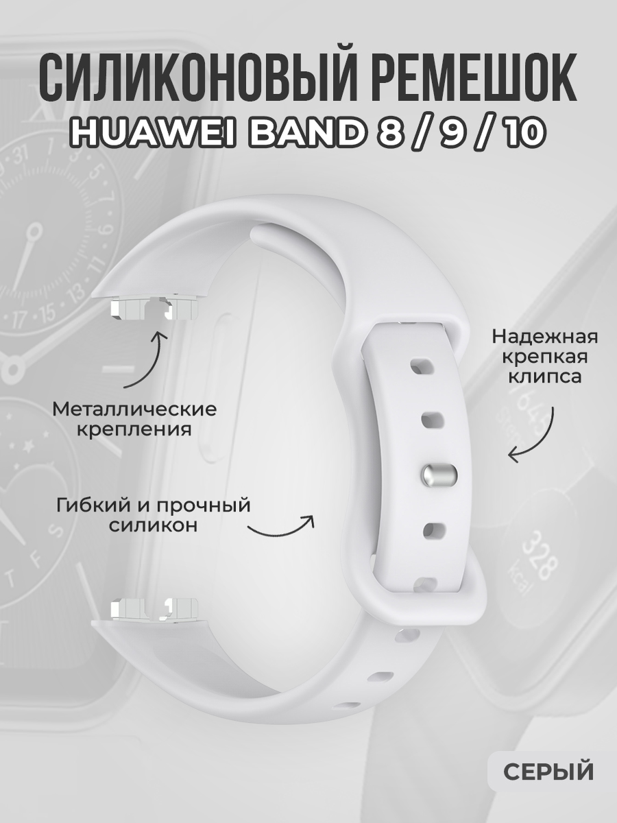 Силиконовый тонкий ремешок для Huawei Band 8/9/10, серый