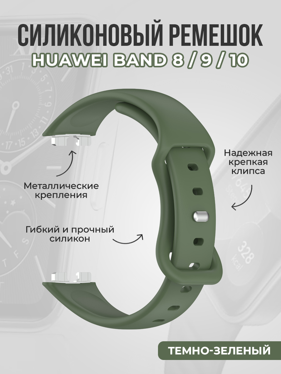 Силиконовый тонкий ремешок для Huawei Band 8/9/10, темно-зеленый