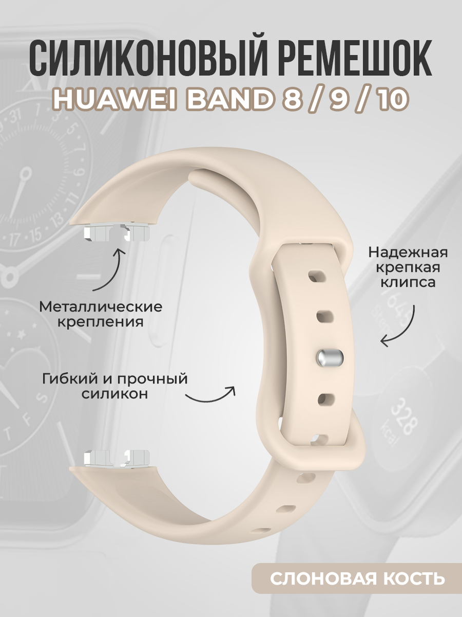 Силиконовый тонкий ремешок для Huawei Band 8/9/10, слоновая кость