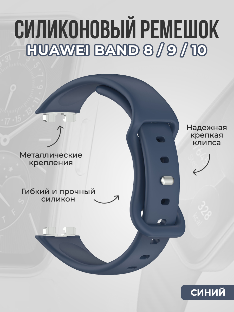 Силиконовый тонкий ремешок для Huawei Band 8/9/10, синий