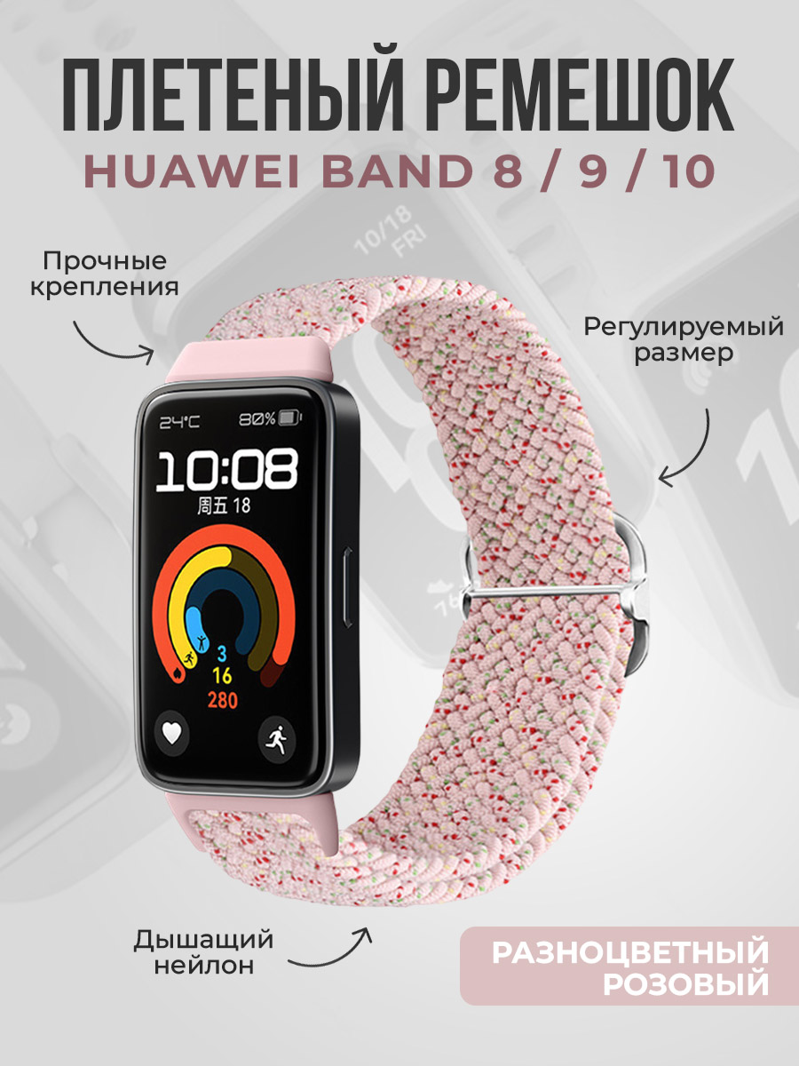 Плетеный нейлоновый ремешок для Huawei Band 8/9/10, регулируемый по длине, разноцветный розовый