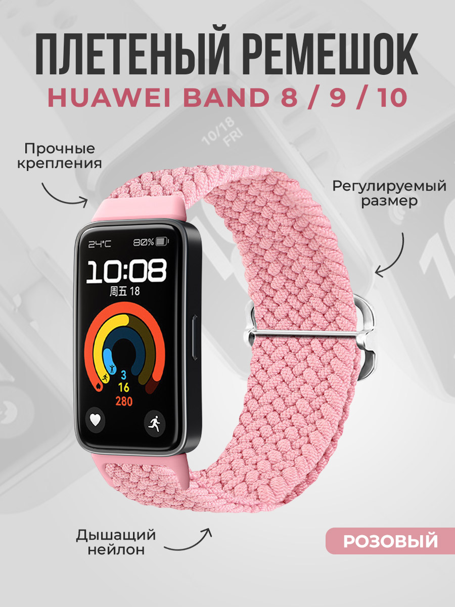 Плетеный нейлоновый ремешок для Huawei Band 8/9/10, регулируемый по длине, розовый