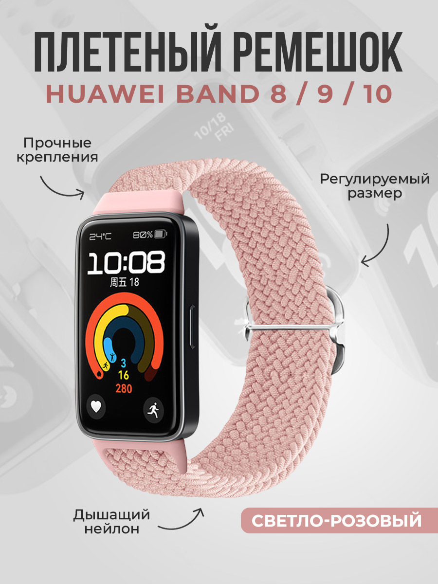 Плетеный нейлоновый ремешок для Huawei Band 8/9/10, регулируемый по длине, светло-розовый