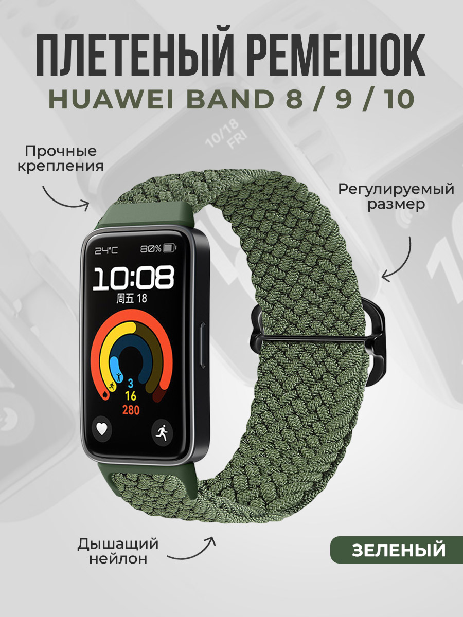 Плетеный нейлоновый ремешок для Huawei Band 8/9/10, регулируемый по длине, зеленый