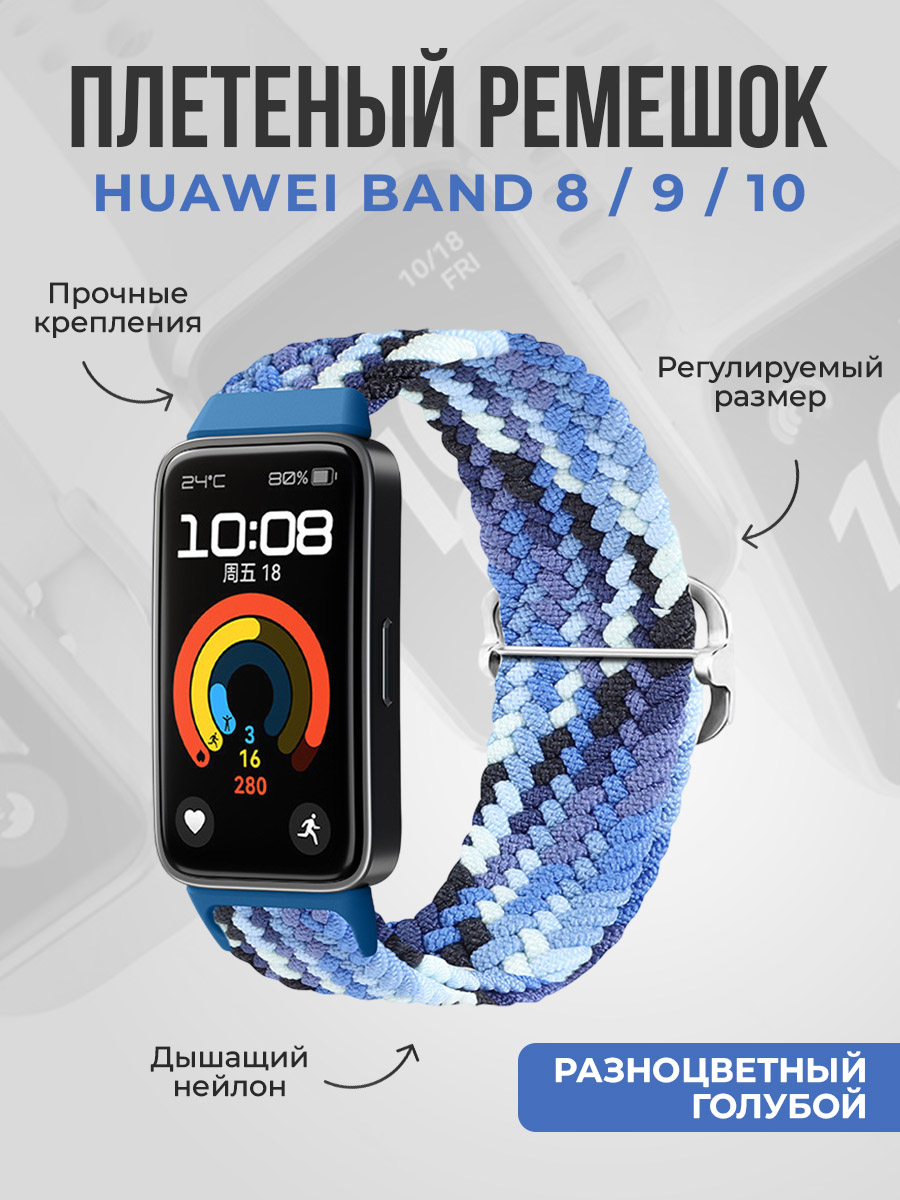 Плетеный нейлоновый ремешок для Huawei Band 8/9/10, регулируемый по длине, разноцветный голубой