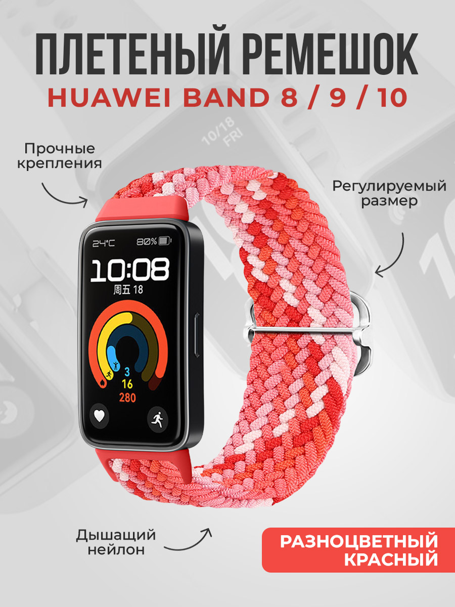 Плетеный нейлоновый ремешок для Huawei Band 8/9/10, регулируемый по длине, разноцветный красный