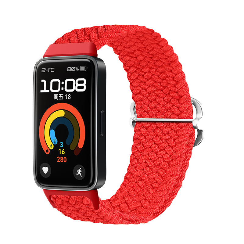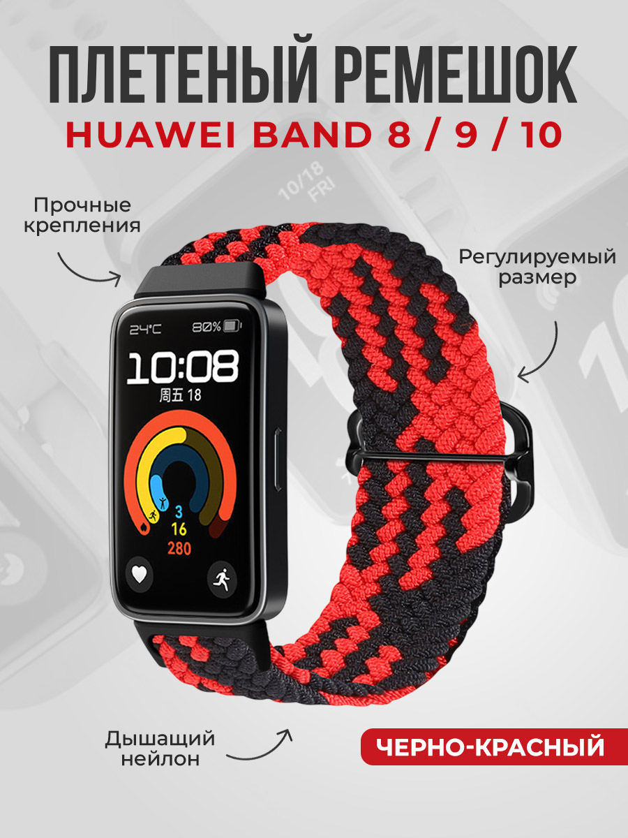 Плетеный нейлоновый ремешок для Huawei Band 8/9/10, регулируемый по длине, черно-красный
