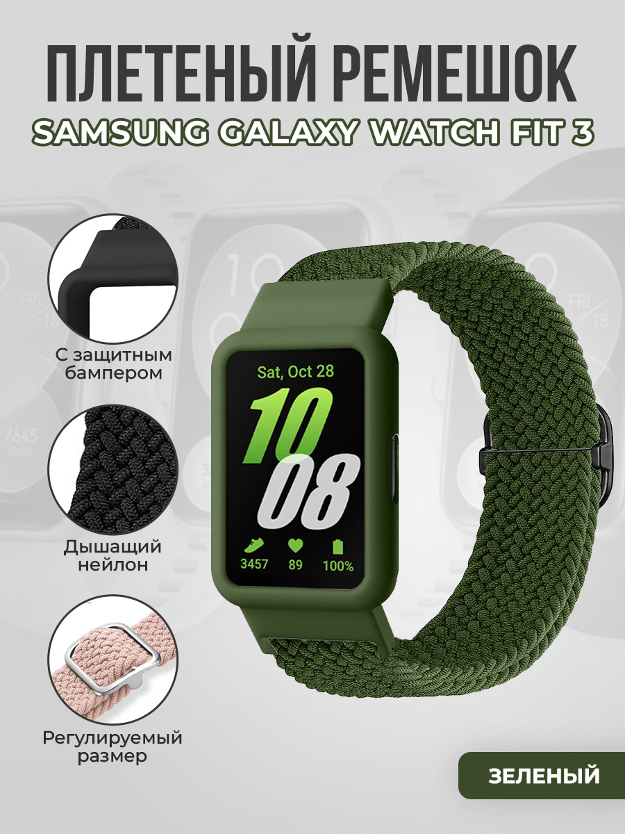 Плетеный ремешок с защитным чехлом для Samsung Galaxy Watch Fit 3, зеленый