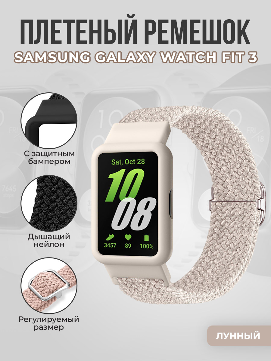 Плетеный ремешок с защитным чехлом для Samsung Galaxy Watch Fit 3, лунный