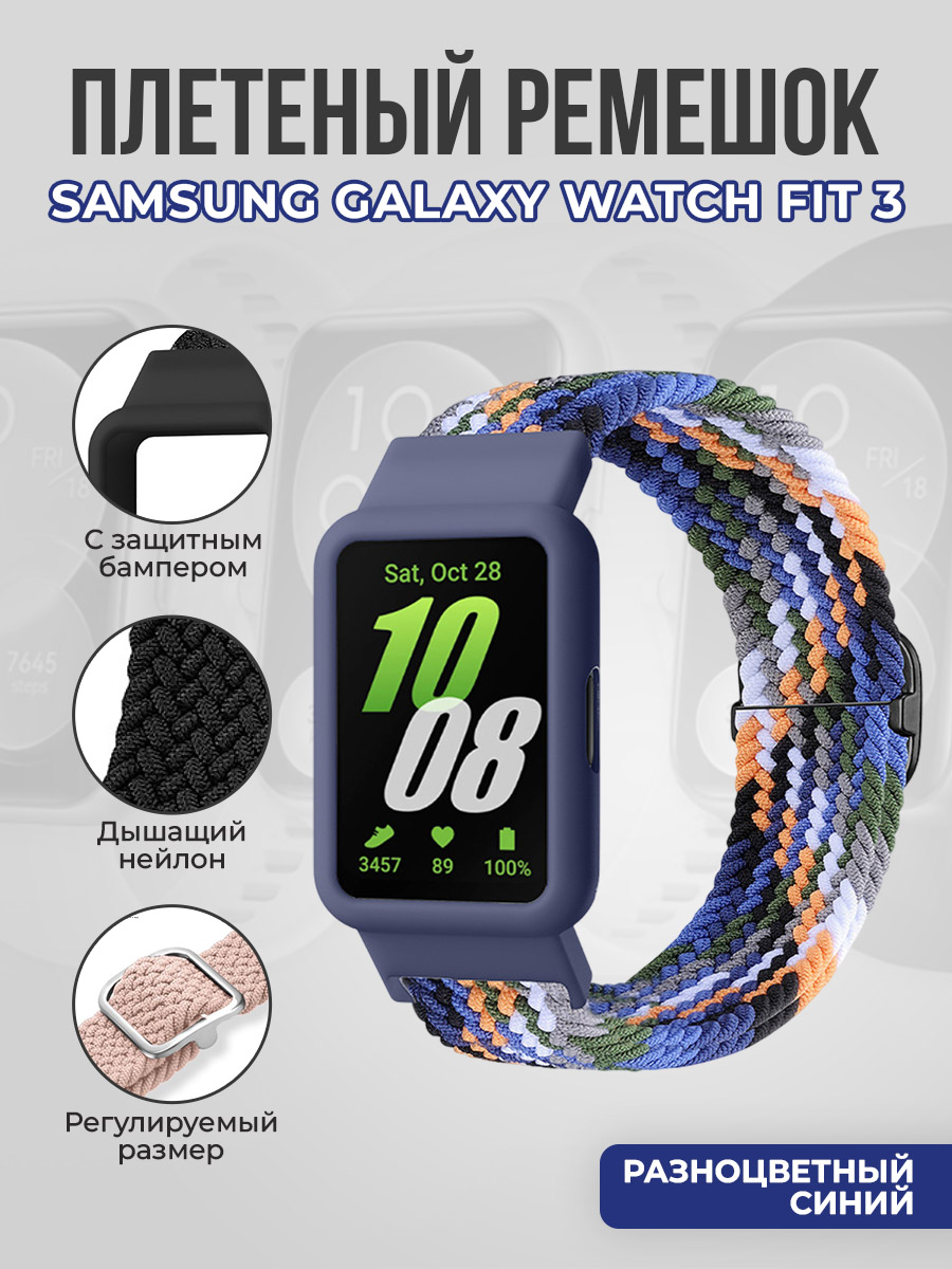 Плетеный ремешок с защитным чехлом для Samsung Galaxy Watch Fit 3, разноцветный синий
