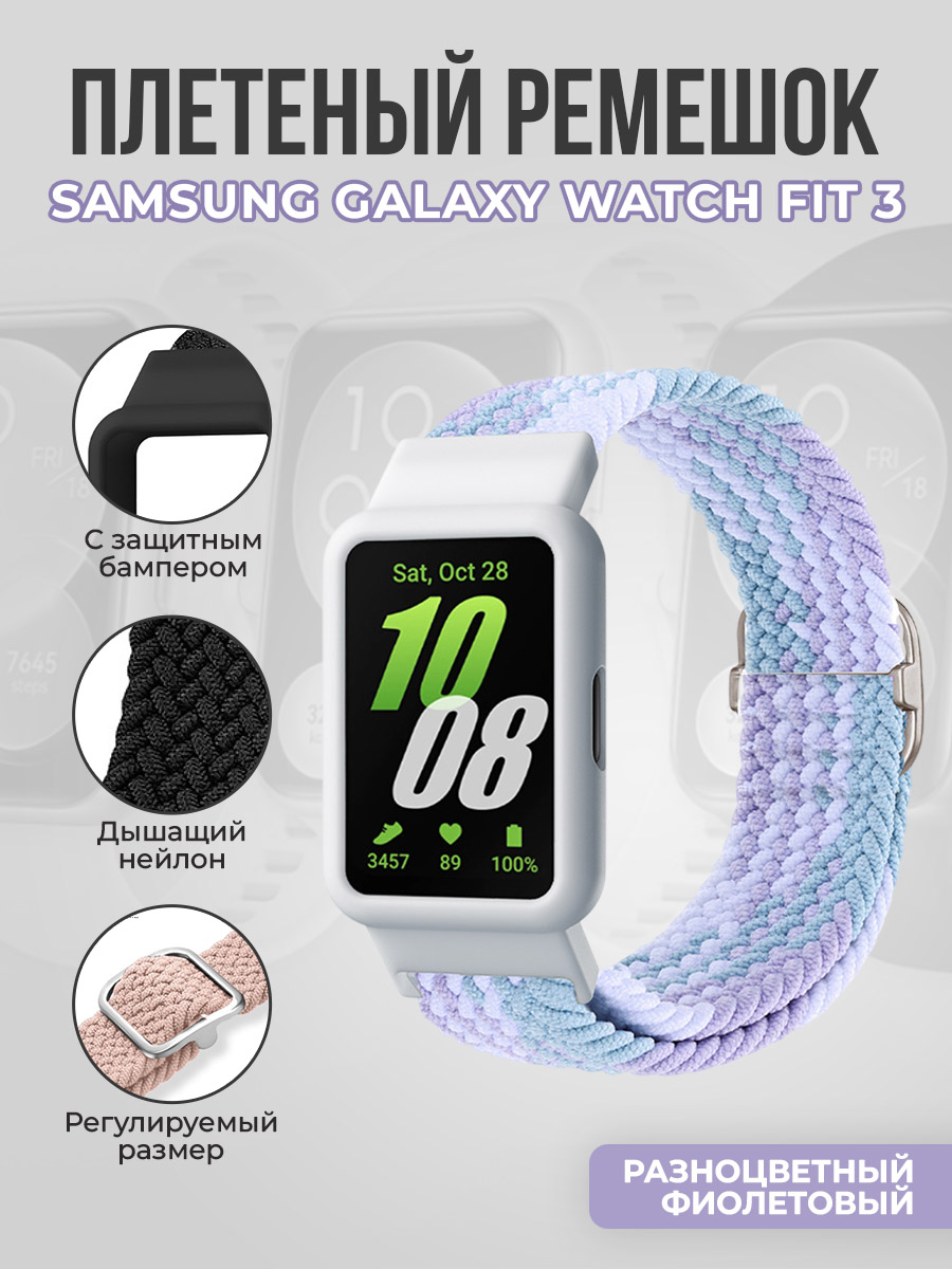 Плетеный ремешок с защитным чехлом для Samsung Galaxy Watch Fit 3, разноцветный фиолетовый