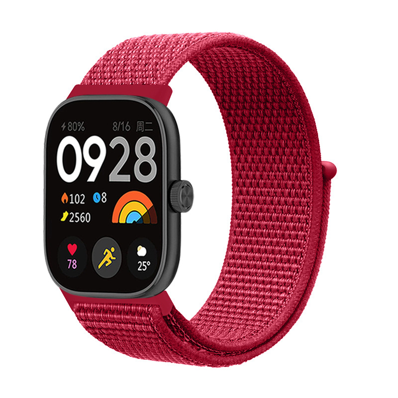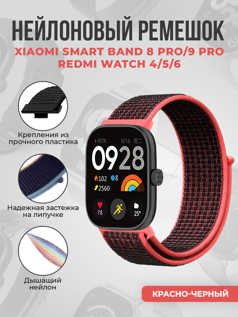 Нейлоновый ремешок на липучке для Xiaomi Smart Band 8 Pro/9 Pro / Redmi Watch 4/5/6, красно-черный
