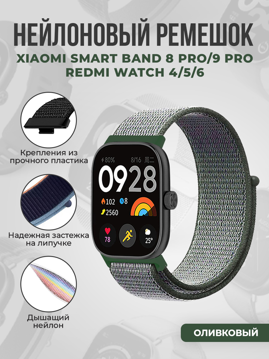 Нейлоновый ремешок на липучке для Xiaomi Smart Band 8 Pro/9 Pro / Redmi Watch 4/5/6, оливковый