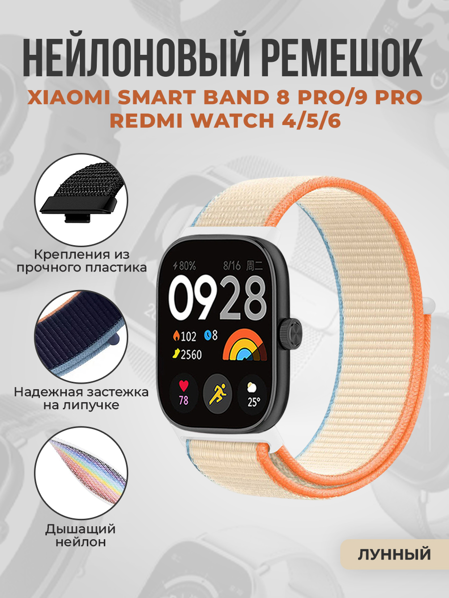 Нейлоновый ремешок на липучке для Xiaomi Smart Band 8 Pro/9 Pro / Redmi Watch 4/5/6, лунный