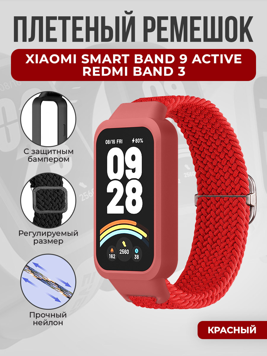 Плетеный ремешок с защитным чехлом для Xiaomi Smart Band 9 Active/Redmi Band 3, красный
