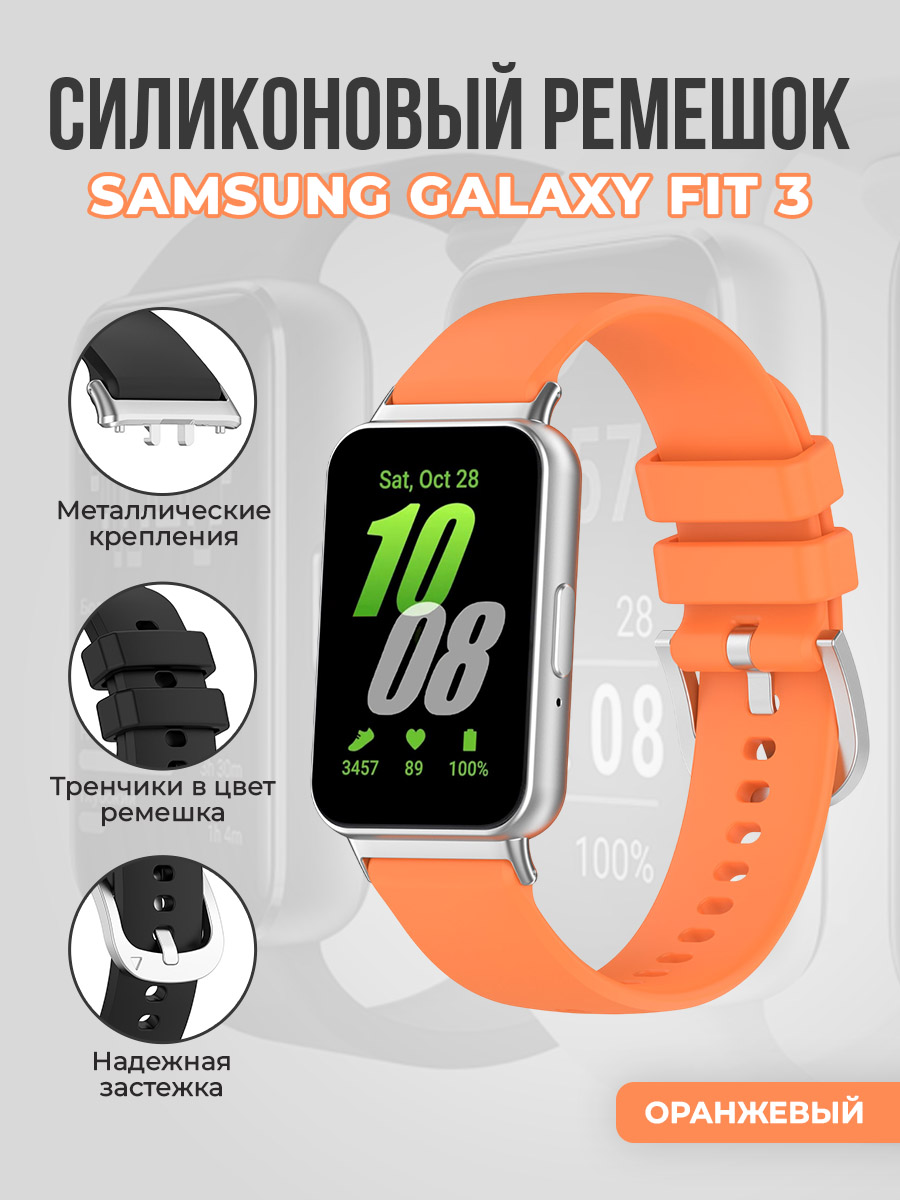 Силиконовый ремешок для Samsung Galaxy Fit 3, с металлическим фиксатором, оранжевый