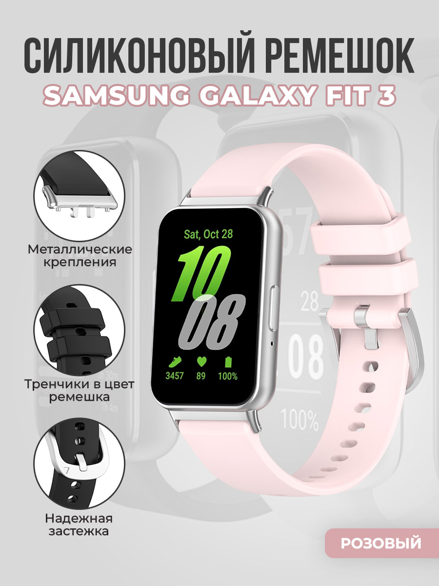 Силиконовый ремешок для Samsung Galaxy Fit 3, с металлическим фиксатором, розовый