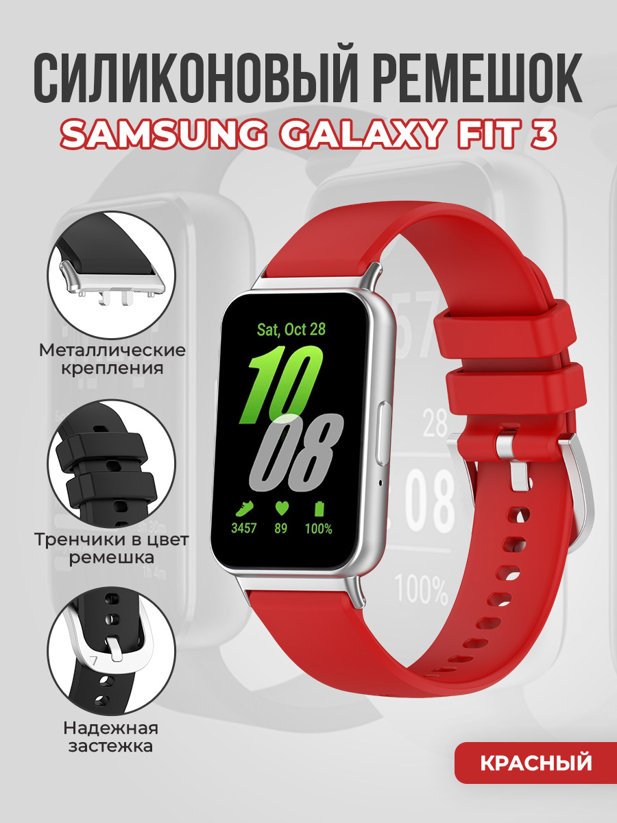 Силиконовый ремешок для Samsung Galaxy Fit 3, с металлическим фиксатором, красный